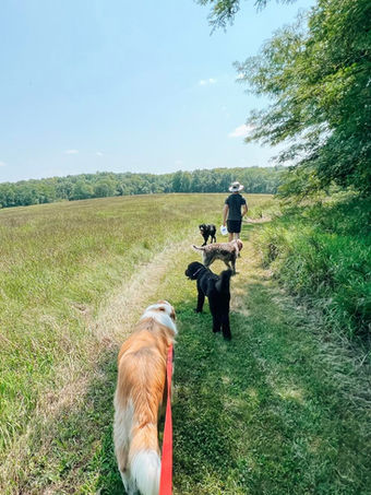 We practice skills out in nature and hike for 1 hr. Typically out of the house approx 3 hrs. Example of what we'll work on; car thresholds, recall, leash pressure, impulse control, place work, learning to be calm, following when prompted (especially before heading to our parking spot), etc. Must complete Hiker's First Steps (below) or show competence with leash pressure and a down-stay.