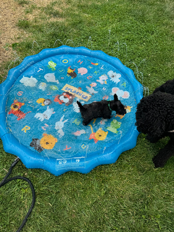 We have a small number of dogs we host for daycare. Currently we have a few Tuesdays & Wednesdays with a spot available (see pinned post for availability on IG). Daycare is a fun day of playing with friends and toys, working on our manners, learning and exploring new things, enjoying treats and chews, naps, and cuddles. We have a large backyard with platforms, trampoline, digging box, hay tunnel, small pond with waterfall, and cots. Downstairs we have a kennel area with large kennels for those who are kennel trained. We use them for nap time, meals, and special chews. We also have a large playroom with room to play and nap with toys, hanging bungie tug, cots, etc. Throughout the day I post pictures in a shared Google album for you (save any pictures or videos you'd like to keep). We live a mile from Valley high